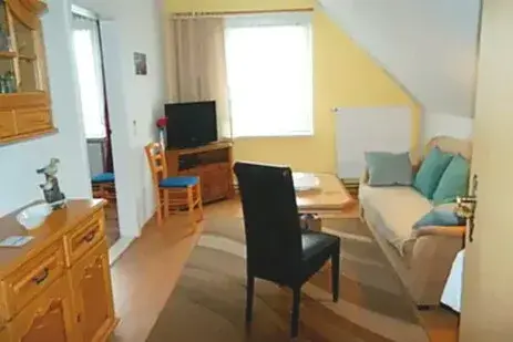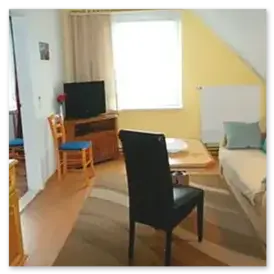 Wohnraum im 1. Obergeschoss, gut ausgestattete Küche, erholsame Schlafzimmer und ein sauberes Bad – gewinnen Sie einen ersten Eindruck. Für Details zu Ausstattung, Größen und Preisen besuchen Sie bitte Ausstattung & Preise.